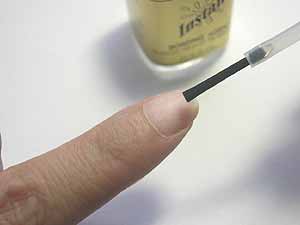 在甲面擦上1-2次的固定劑,避免沾到指緣皮膚.
