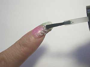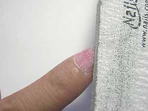 清除餘粉後,甲面擦上少量的防潮液,去除甲面多餘的油脂及水分.