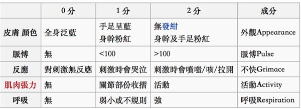 目前臨床上最普遍用來評估新生兒狀態的方法,是使用「阿普伽新生兒評分」(Apgar Score)。這是 1952 年一位紐約的麻醉科醫師發明的。當年的美國新生兒死亡率也很高,其中有一個很嚴重的問題就是沒有統一性的評分標準。同樣一個新生兒,有的醫生覺得狀況不好,有的覺得還可以,這會導致後續的照顧沒有一致性。