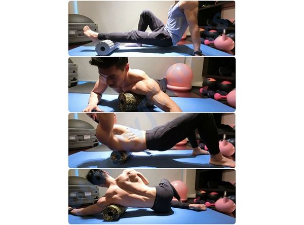 例如大腿前及髖屈部位、小腿的筋膜放鬆改善踝關節活動度、肩關節周圍放鬆:如胸大肌、闊背肌,改善過頭深蹲手臂舉高姿勢(背部面積很大,可以用不同角度仔細按壓)